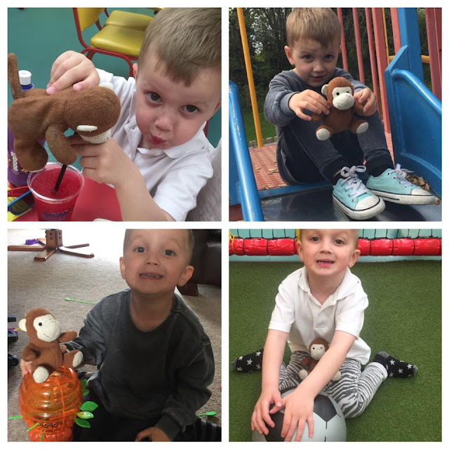 We then come back and walked Josh to the park close to my house which he loves. He had the magical monkey from nursery that weekend and he was so excited. The idea is to take the monkey on lots of adventures taking photos along the way and sharing it in the nursery photo book, so they can all read about it back at nursery Monday morning. Josh took the monkey to a play place with his friends on the Friday. Saturday he took him to the park and to mummy's baby shower and Sunday, he took him for a ride on our tortoises and another trip to the park to play with his digger he really did have a busy weekend.